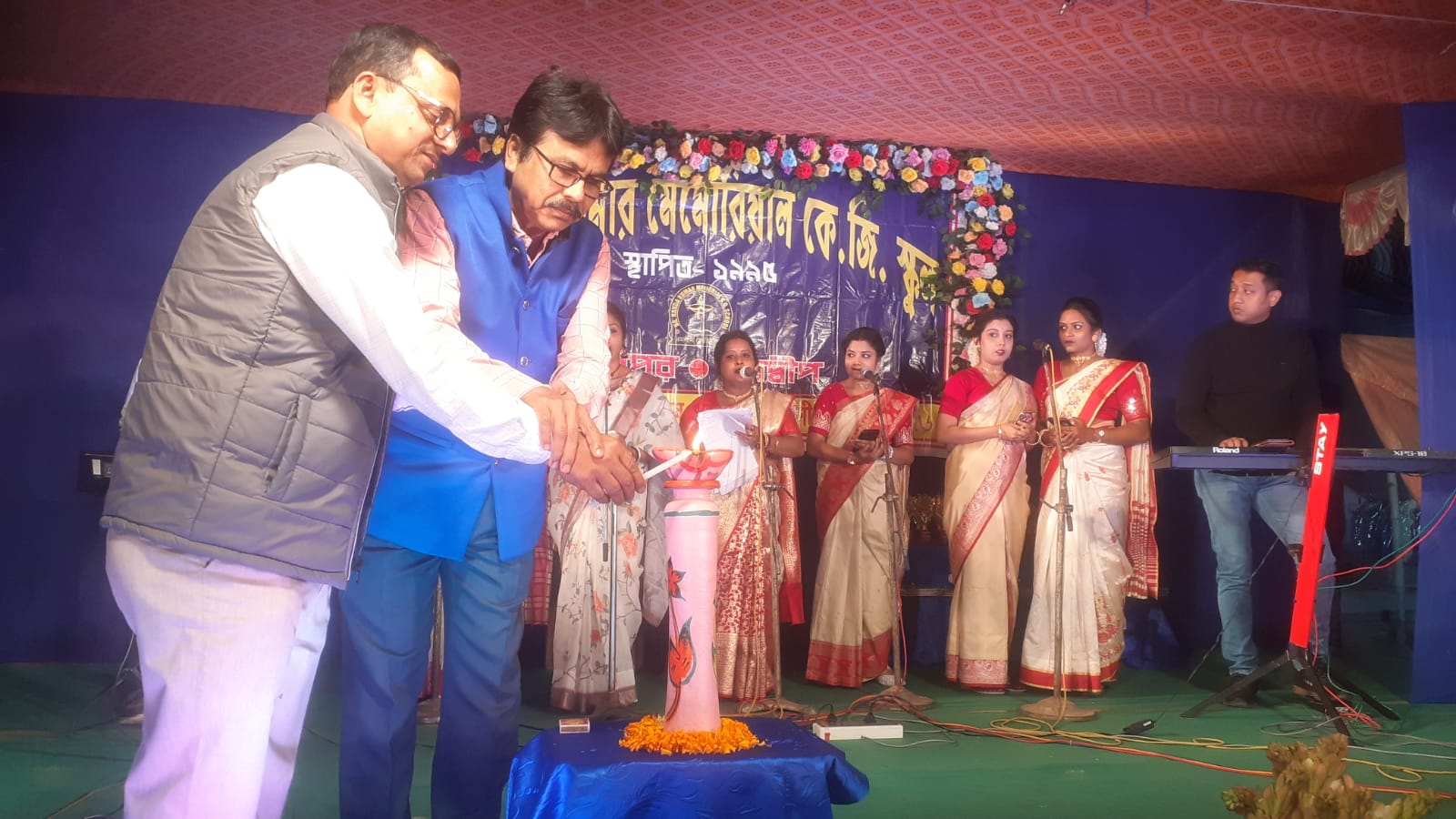 ১০ ফেব্রুয়ারি ২৬ নবদ্বীপ ডাঃ নন্দ কুমার মেমোরিয়াল কে জি স্কুলের ৩১ তম বার্ষিক সাংস্কৃতিক অনুষ্ঠান ও পুরস্কার প্রদান ২০২৬ অনুষ্ঠিত হলো নবদ্বীপ মনিপুর রাজবাড়ীর বকুলতলা মাঠে। এদিনের সন্ধ্যায় এই অনুষ্ঠানে উদ্বোধক হিসাবে উপস্থিত ছিলেন শিক্ষারত্ন পুরস্কার প্রাপ্ত শিক্ষক প্রসেনজিৎ সরকার এবং বিশেষ অতিথি রূপে উপস্থিত ছিলেন নদীয়া জেলা পরিষদের সদস্যা আরজুবানু খাতুন। অনুষ্ঠানের শুরুতে যার নামাঙ্কিত এই বিদ্যালয়ে তার প্রতিকৃতিতে মাল্যদান করা হয়। এরপর মঙ্গল প্রদীপ প্রজ্বলন করেন উদ্বোধক প্রসেনজিৎ সরকার। এরপর উপস্থিত অতিথিদের উত্তরিয় পড়িয়ে গোলাপ দিতে বরণ করে নেওয়া হয় বিদ্যালয়ের পক্ষ থেকে।
