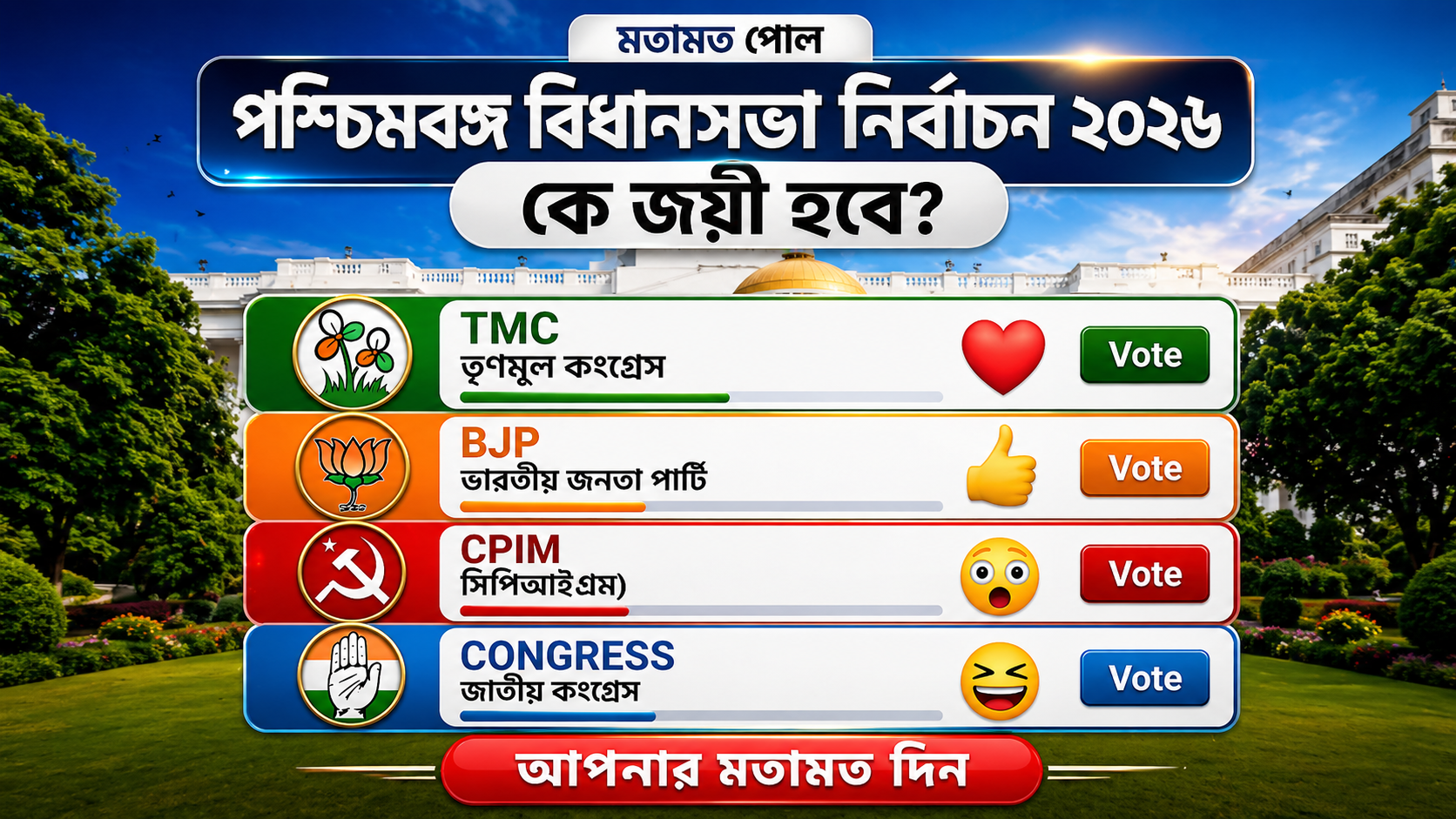 - ২০২৬ সালের বিধানসভা নির্বাচন ঘিরে পশ্চিমবঙ্গজুড়ে রাজনৈতিক উত্তেজনা তুঙ্গে।