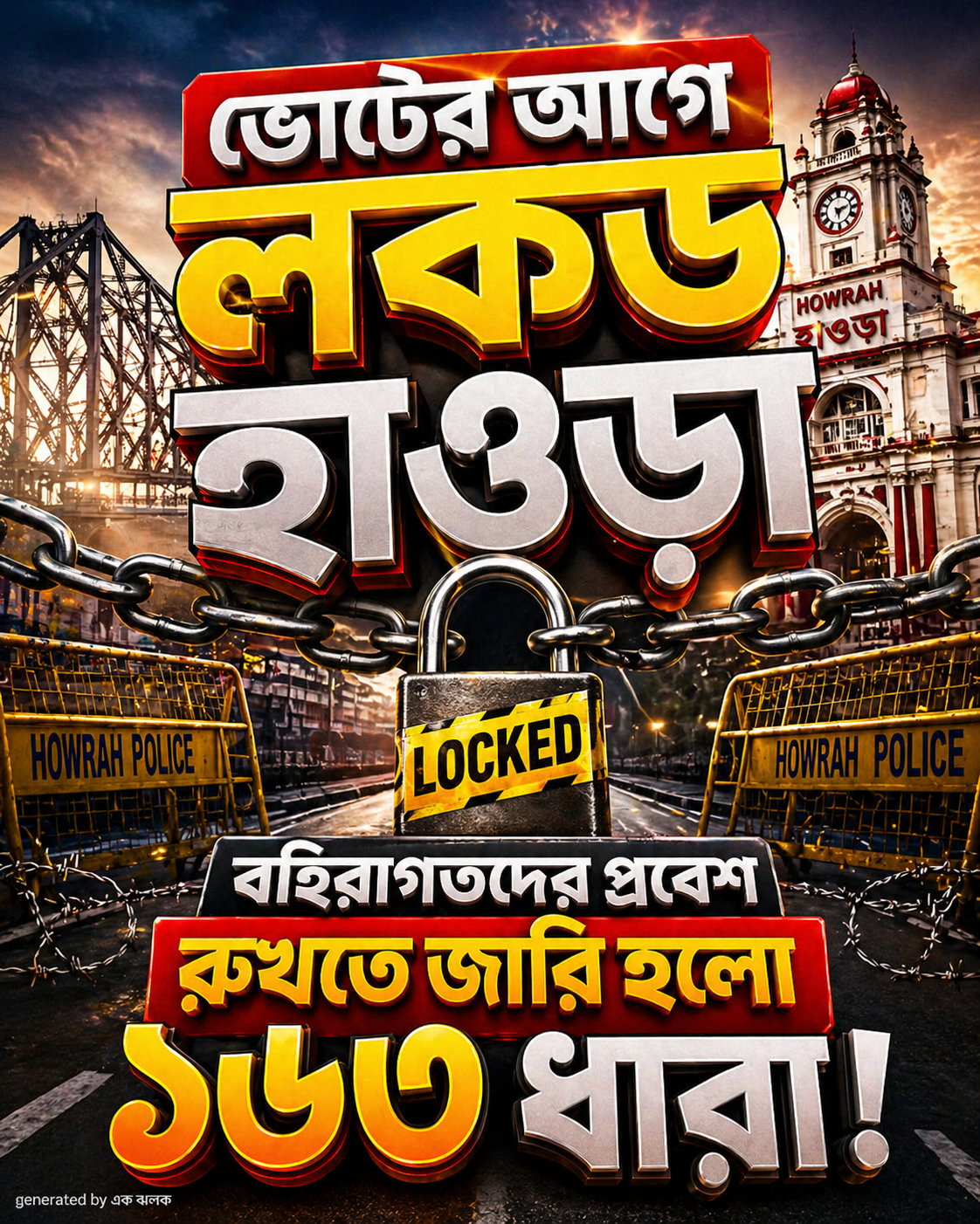 আগামী ২৯ এপ্রিল হাওড়া জেলার একাধিক কেন্দ্রে দ্বিতীয় দফার বিধানসভা নির্বাচন অনুষ্ঠিত হতে যাচ্ছে। এই নির্বাচনকে সম্পূর্ণ নির্বিঘ্ন, অবাধ ও শান্তিপূর্ণ করতে নজিরবিহীন তৎপরতা শুরু করেছে জেলা প্রশাসন। ভোটের দুই দিন আগে অর্থাৎ ২৭ এপ্রিল সোমবার সন্ধ্যা থেকেই পুরো জেলাজুড়ে ভারতীয় নাগরিক সুরক্ষা সংহিতার ১৬৩ ধারা (পুরানো ১৪৪ ধারা) বলবৎ করা হয়েছে। কোনো ধরনের অপ্রীতিকর ঘটনা বা বিশৃঙ্খলা এড়াতে প্রশাসন এখন কার্যত কঠোর নজরদারির কবলে।