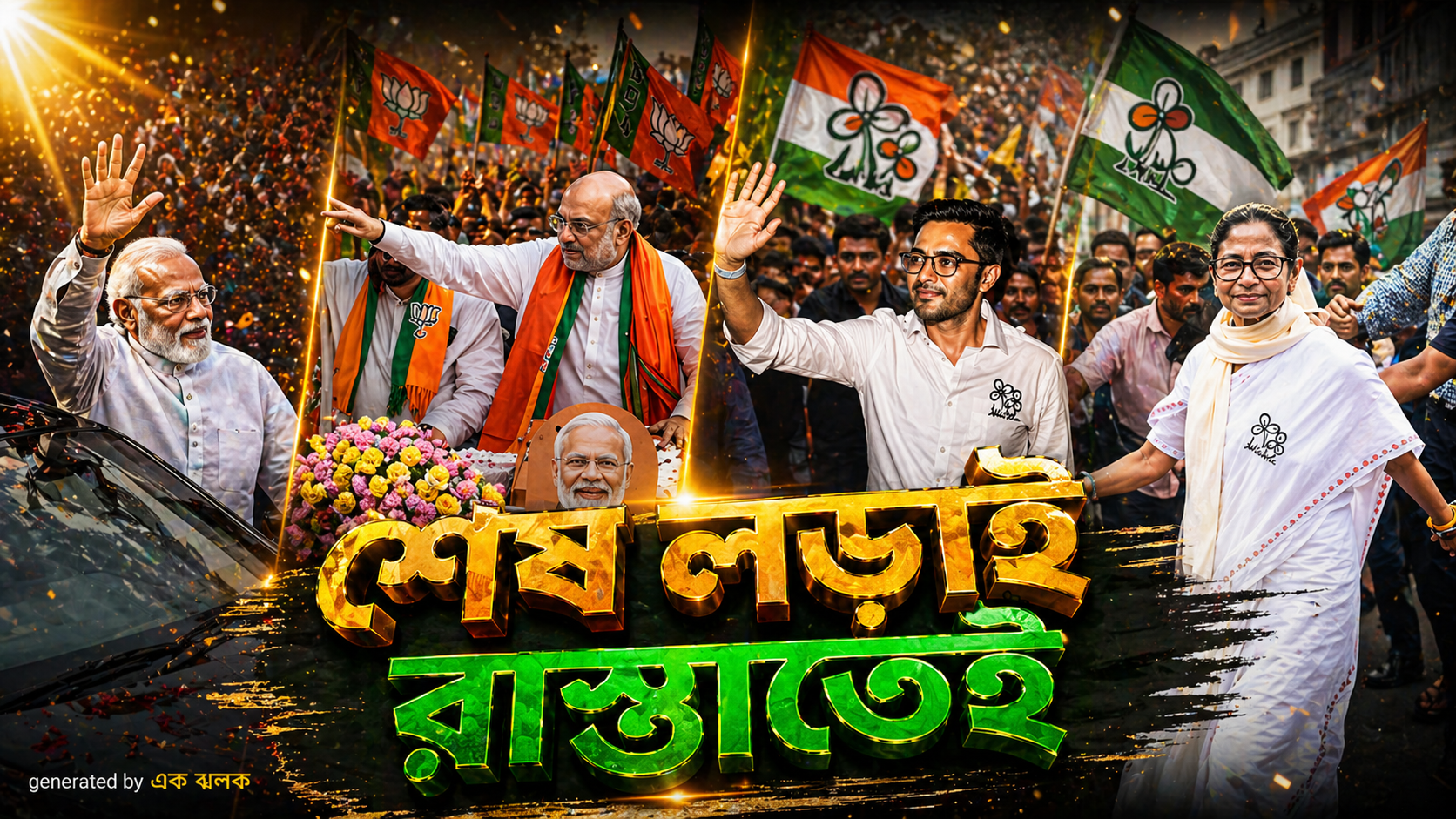 ২০২৬-এর বিধানসভা নির্বাচনের দ্বিতীয় দফার হাইভোল্টেজ লড়াইয়ের আগে প্রচারের শেষ লগ্নে এক অদ্ভুত সমীকরণ দেখা গেল বাংলায়। একদিকে যখন কৃত্রিম বুদ্ধিমত্তা (AI), সোশ্যাল মিডিয়া আর ডিজিটাল বিজ্ঞাপনে কোটি কোটি টাকা ঢালছে রাজনৈতিক দলগুলো, ঠিক তখনই প্রচারের অন্তিম কয়েক ঘণ্টায় সব হেভিওয়েটদের দেখা গেল রাস্তার ধুলোবালি মেখেই জনসংযোগ সারতে। ডিজিটাল প্রচারের রমরমার মাঝেও বাংলার মাটির লড়াইয়ে ‘রোড-শো’ আর ‘পদযাত্রা’ যে এখনও অপ্রতিদ্বন্দ্বী, সোমবারের চিত্র সেই রাজনৈতিক বাস্তবকেই প্রমাণ করল।